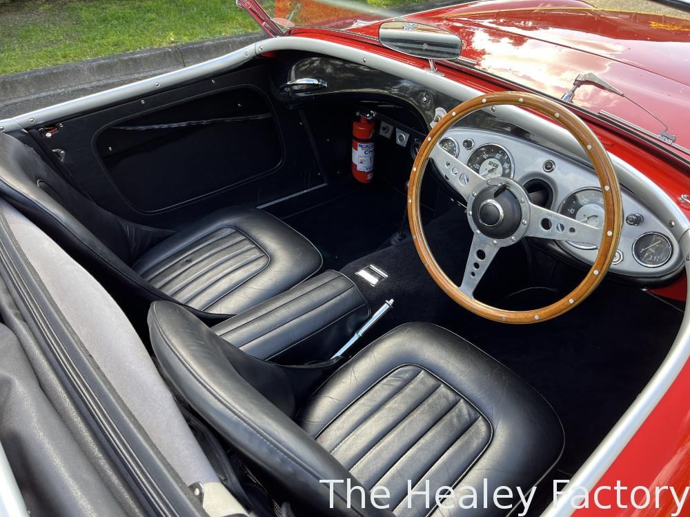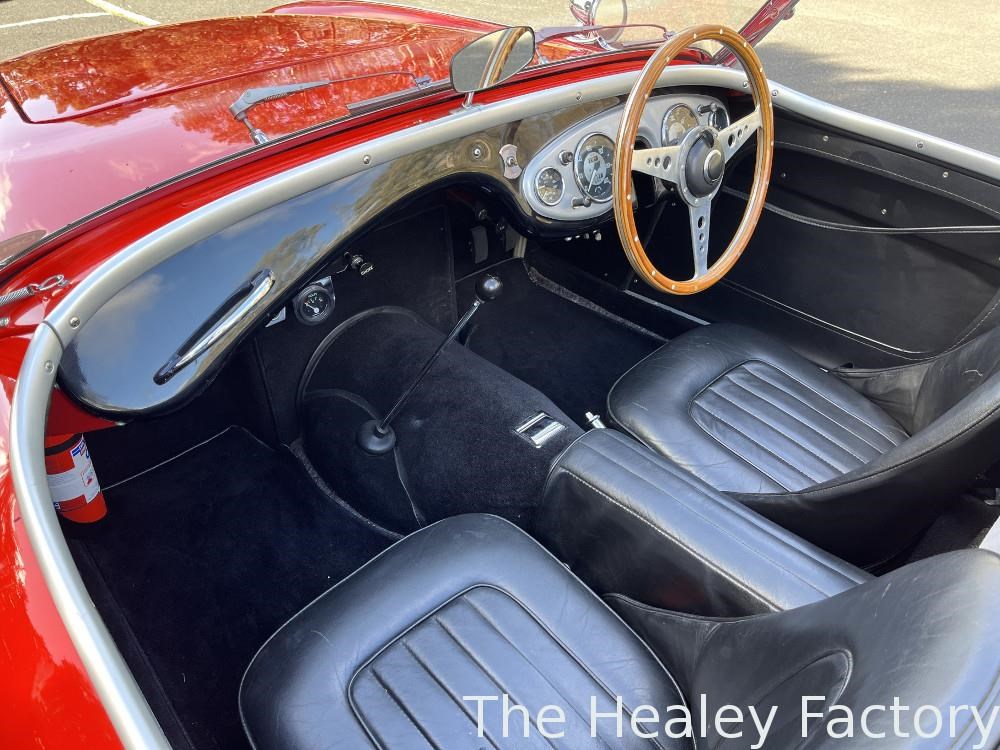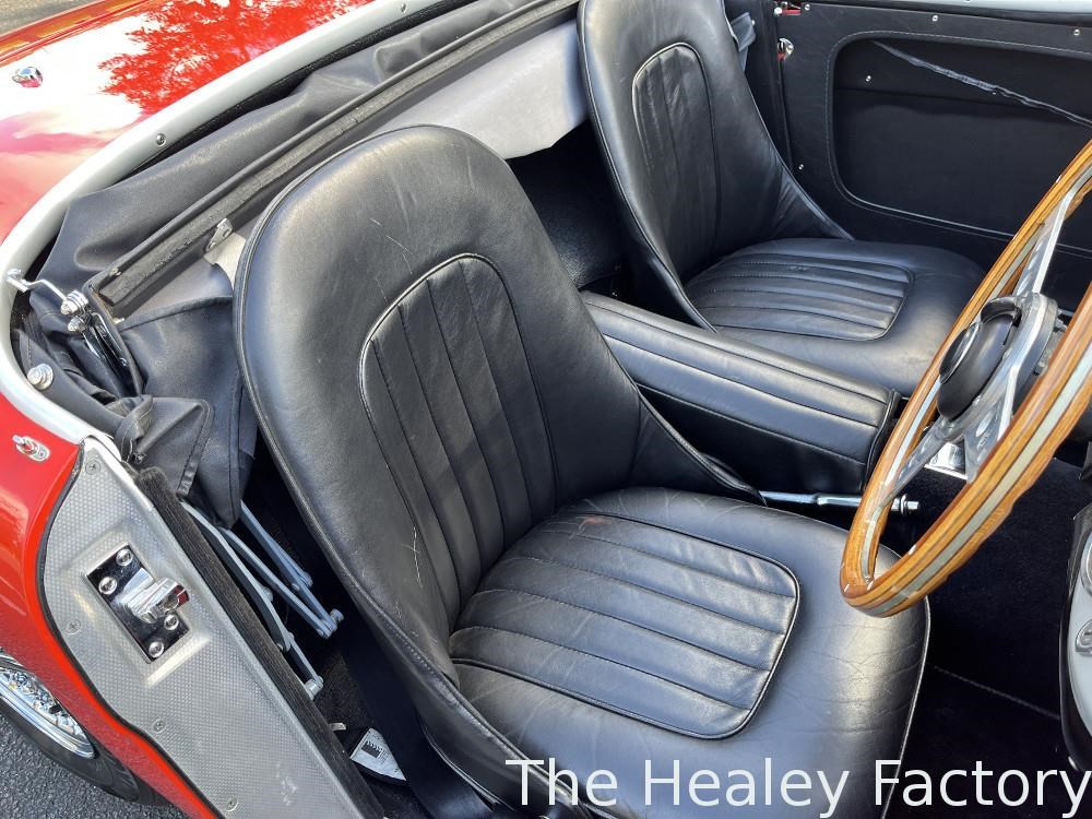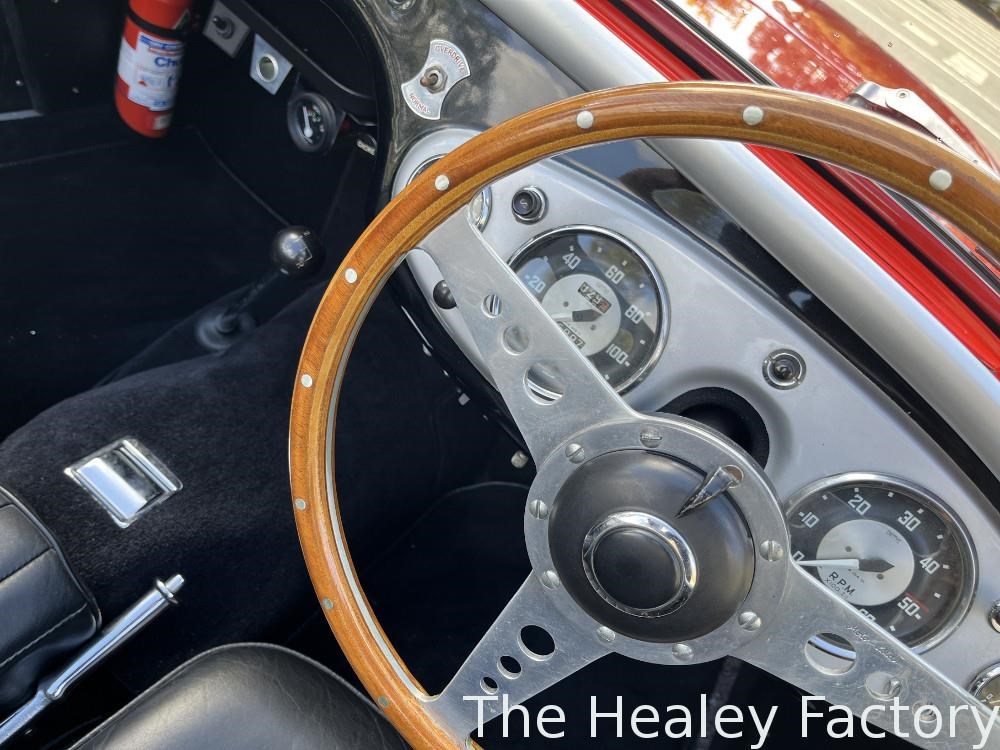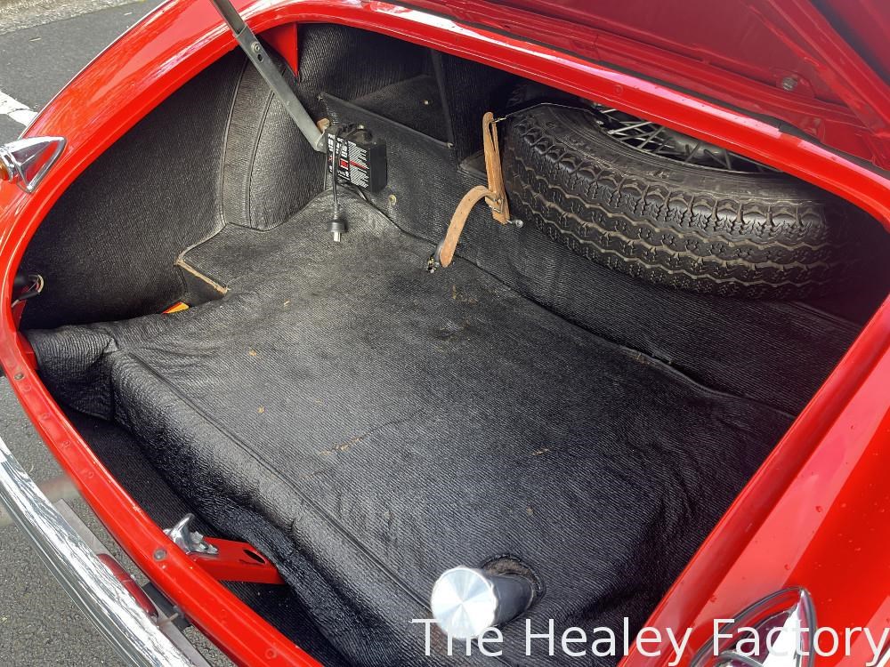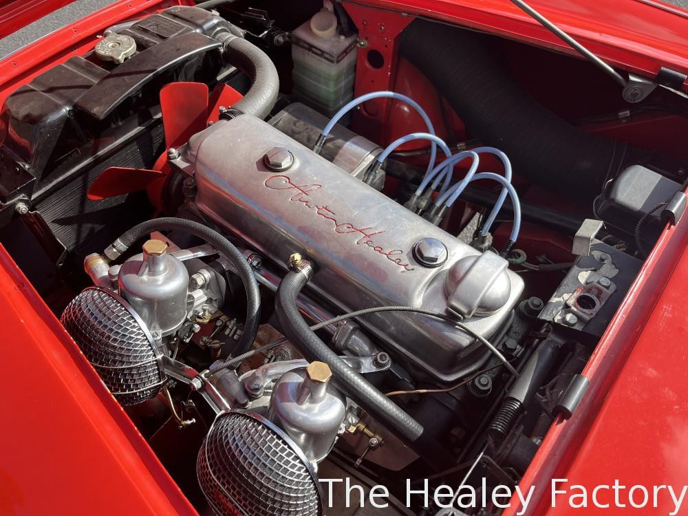 The Healey is largely mechanically standard with small under bonnet improvements consisting of an alloy script rocker cover and Texas Kooler fan. In addition, a new aluminium fuel tank has been fitted. The exterior benefits from a rear indicator conversion in place of the original reflectors as well as mesh guards over the head and driving lamps.