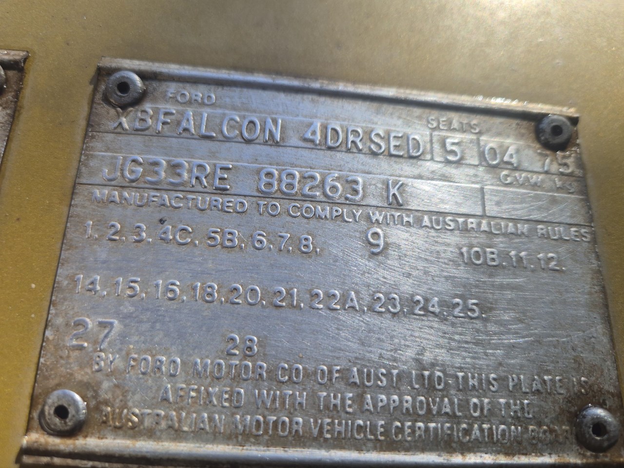 According to the Ford build documents, this GT is one of 1,930 XB GT Falcons built, one of 1,013 automatic XB GTs and one of 89 Tropic Gold examples. According to the Ford letter of verification, this GT was factory optioned with the Protection Pack, Power Steering and a Heated Backlite. The Ford option code 04 - Protection Pack included bumper overriders, side protection and the desirable chrome bumpers front and back.