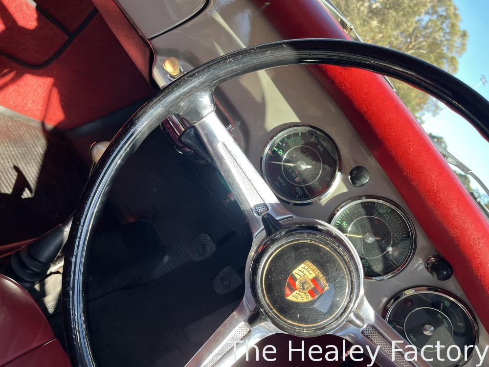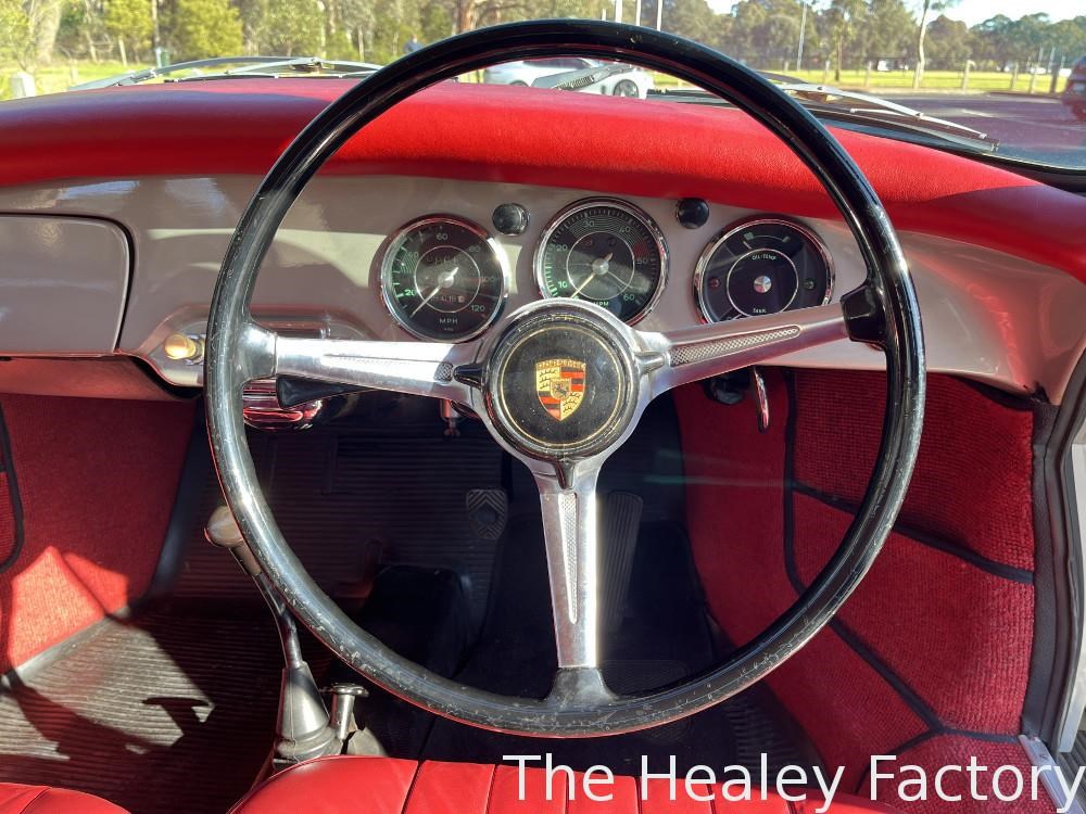 This delightful Right hand Drive conversion, early Porsche was restored in 2000 with photos to document this and presents in Silver with contrasting Red leather interior, complete with correct period Blaupunkt radio. The chrome wheels and hubcaps set the 356 off beautifully.